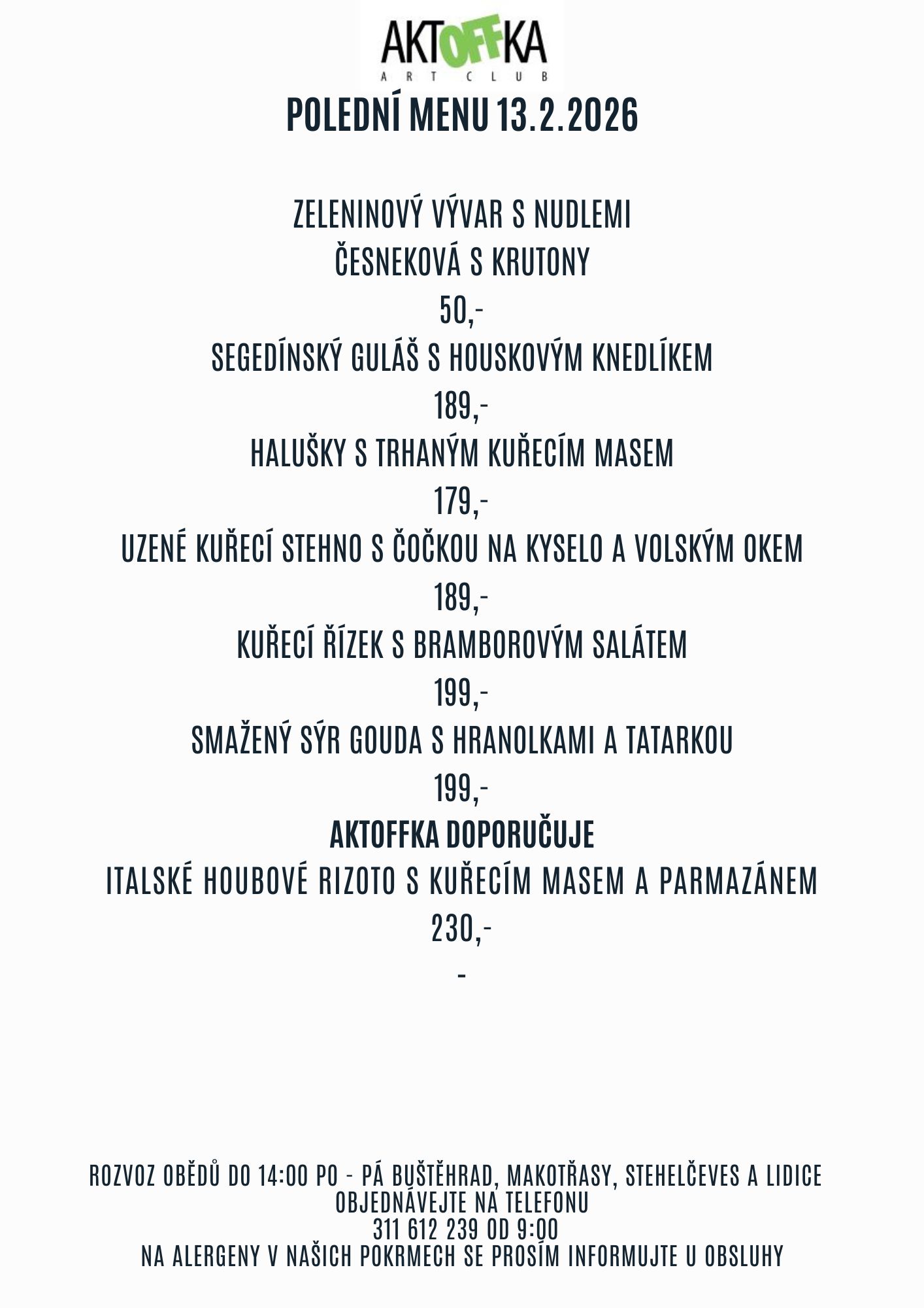 Polední menu 13.2.2026