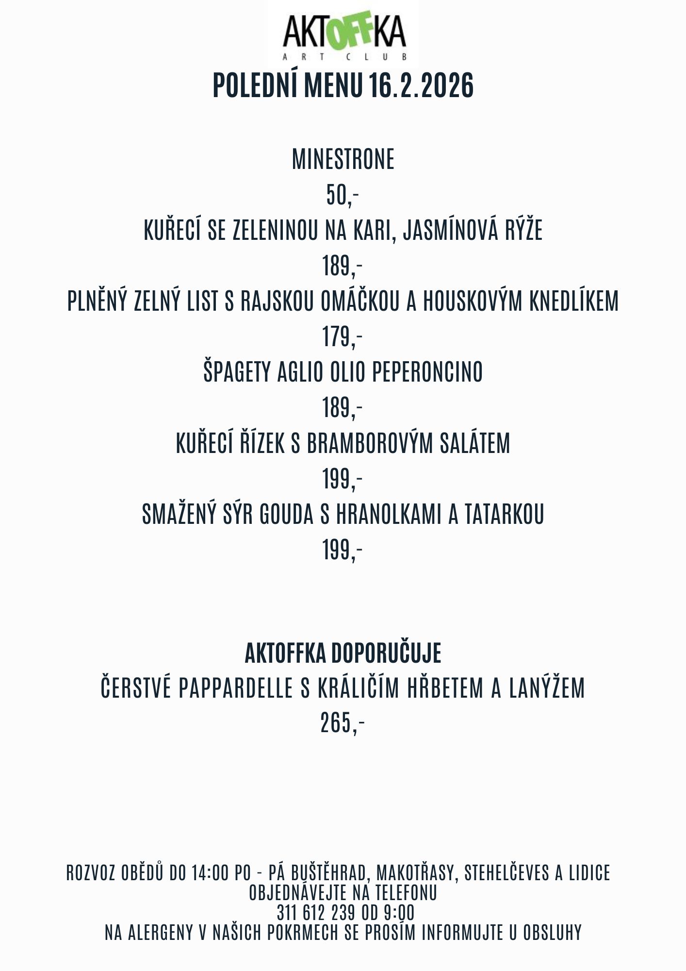 Polední menu 9.2.2026