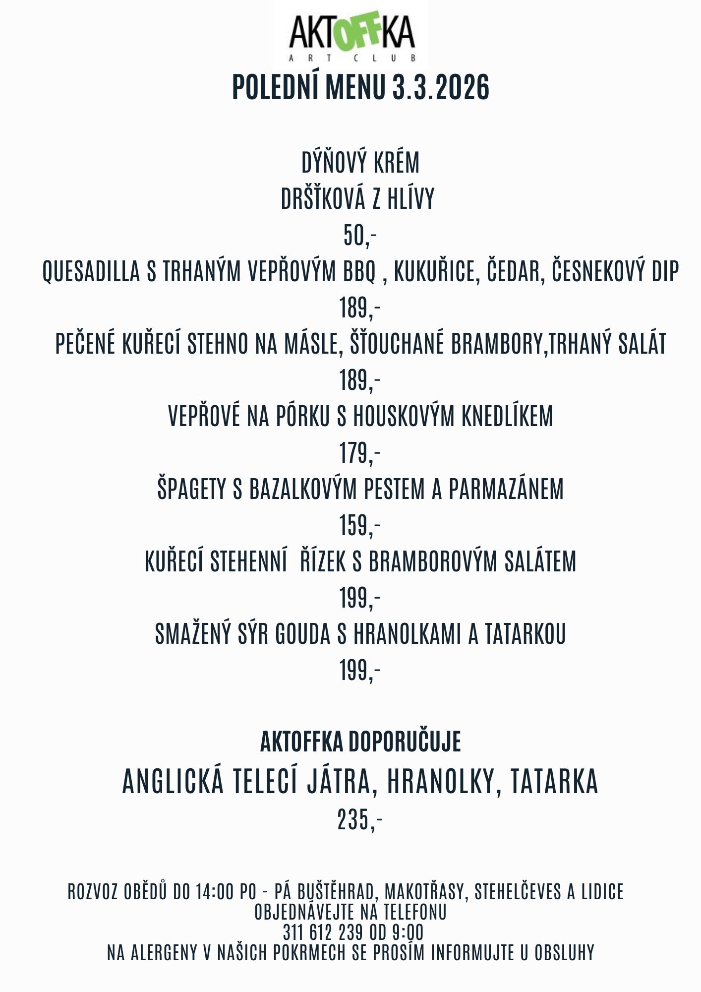Polední menu úterý 4.3.2026