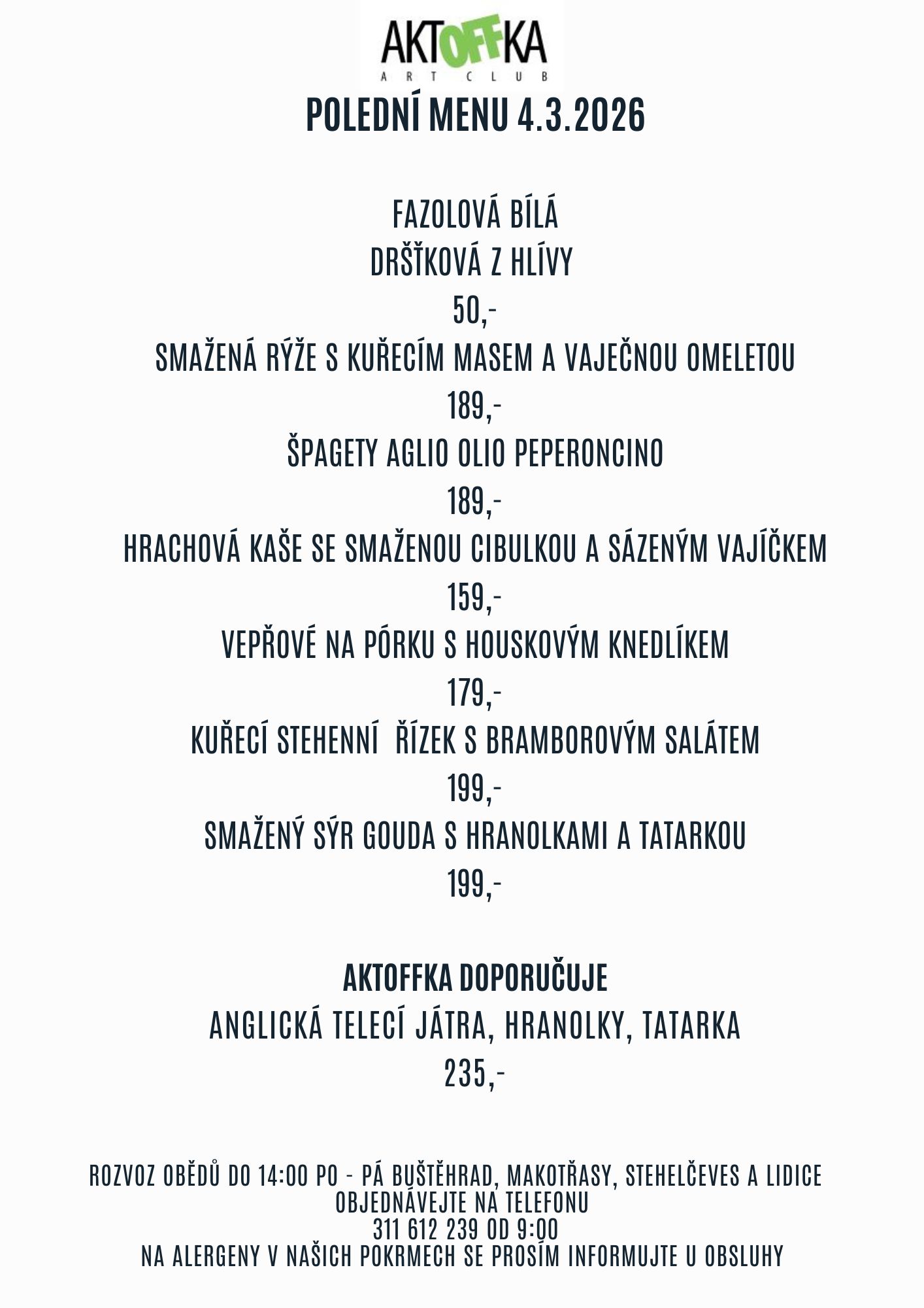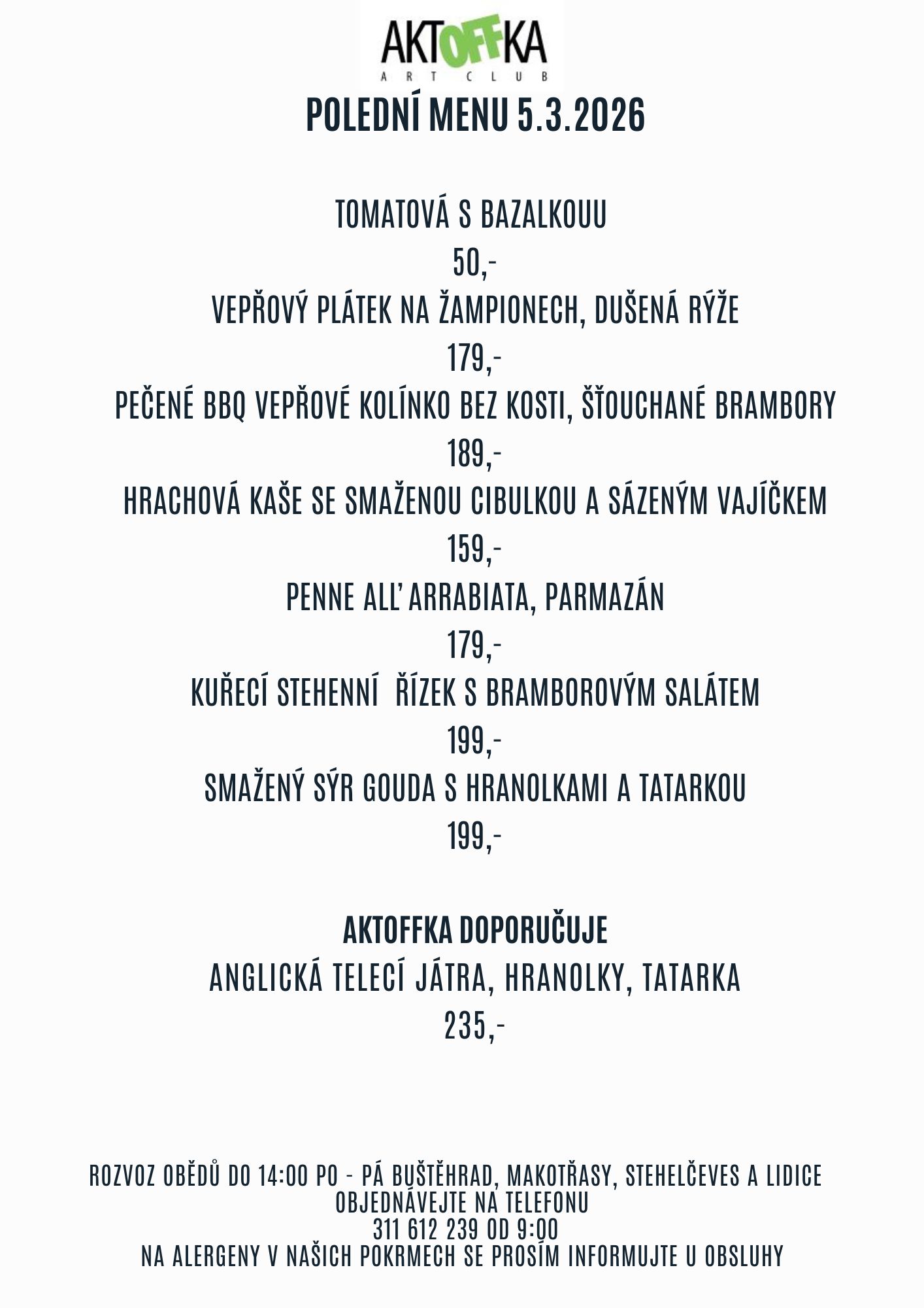Polední menu čtvrtek 5.3. 2026