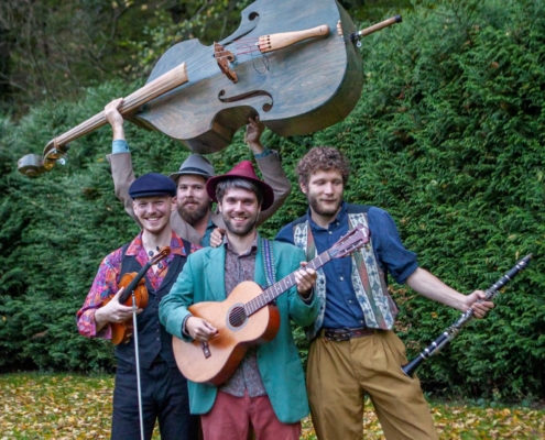 Akustické nástroje, živý kontakt s publikem a hudba, která dokáže být veselá, melancholická i strhující – Der Šenster Gob nejsou stylová rekonstrukce, ale hudba, která se skutečně žije.