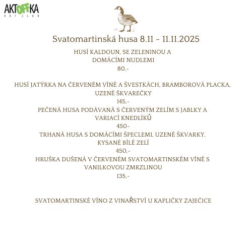 Přijďte si pochutnat na tradičních Svatomartinských husích pochoutkách doprovozených mladými víny.